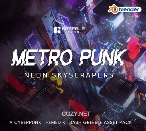 后生视觉设计资源网 » Blender未来科幻赛博朋克霓虹城市摩天大楼建筑3D模型资产预设 Metropunk Neon Skyscrapers - Cyberpunk Kitbash Greeble Assets
