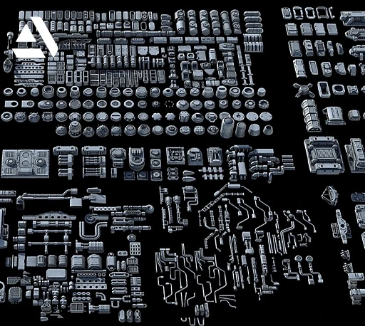 这套Sci-Fi KitBash and Props Pack 全套包,包含669个高精度零件与模块,适合制作宇宙飞船、未来交通工具、机甲零部件等,提供FBX/OBJ/3DS MAX格式。