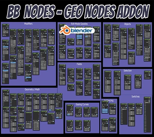BB Nodes是一款专为Blender几何节点(Geometry Nodes)工作流设计的强大插件,由Blender Market知名开发者Blender Bash打造。它通过集成98个自定义节点组,包含挤出(Extrude)、弯曲(Bend)、镜像(Mirror)、阵列(Array)、斜面(Taper)等实用工具,覆盖建模、曲线编辑、UV映射等多种需求。大幅简化了程序化建模流程,尤其适合需要高效创建复杂模型的用户。