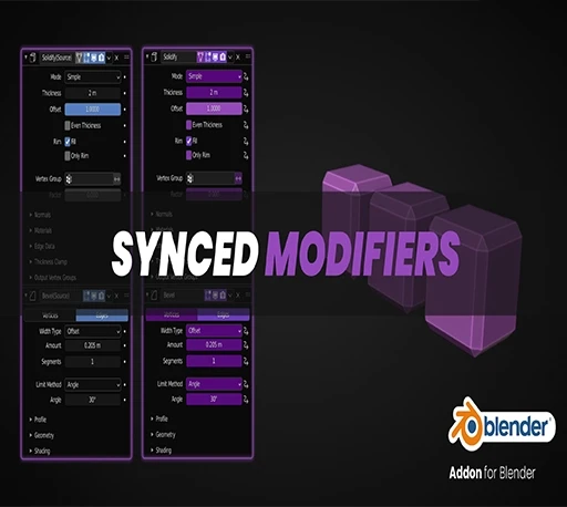Synced Modifiers is a Blender Add-on that allows you to add modifiers to multiple objects at the same time and automatically syncs all the modifiers using Drivers.