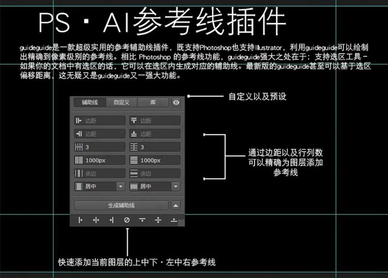 后生视觉设计资源网 » 中文汉化-PS/AI网格辅助参考线插件 GuideGuide v5.0.20
