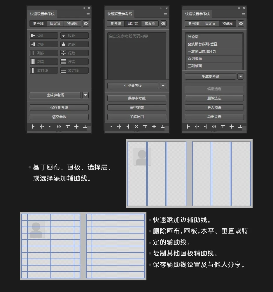 - 🎯 基于画布 / 画板 / 选区 / 对象生成参考线
