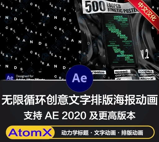后生视觉设计资源网 » AE脚本|500组无限循环创意动力学文字排版海报动画 Seamless Loop Kinetic Posters 2