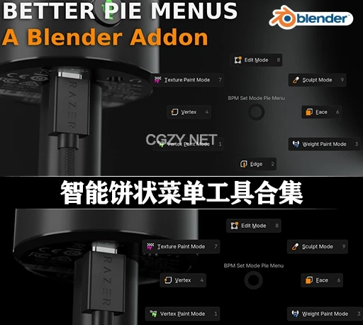 后生视觉设计资源网 » Blender插件|智能饼状菜单工具合集 Better Pie Menus V0.2.0