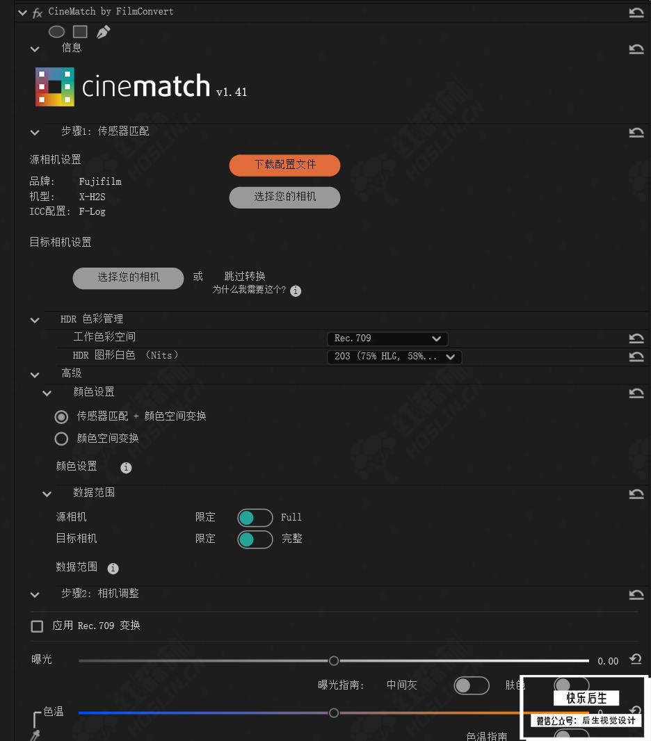 后生视觉设计资源网 » 【PR插件】摄像机色彩空间匹配调色PR插件 CineMatch PP v1.41 Win汉化版