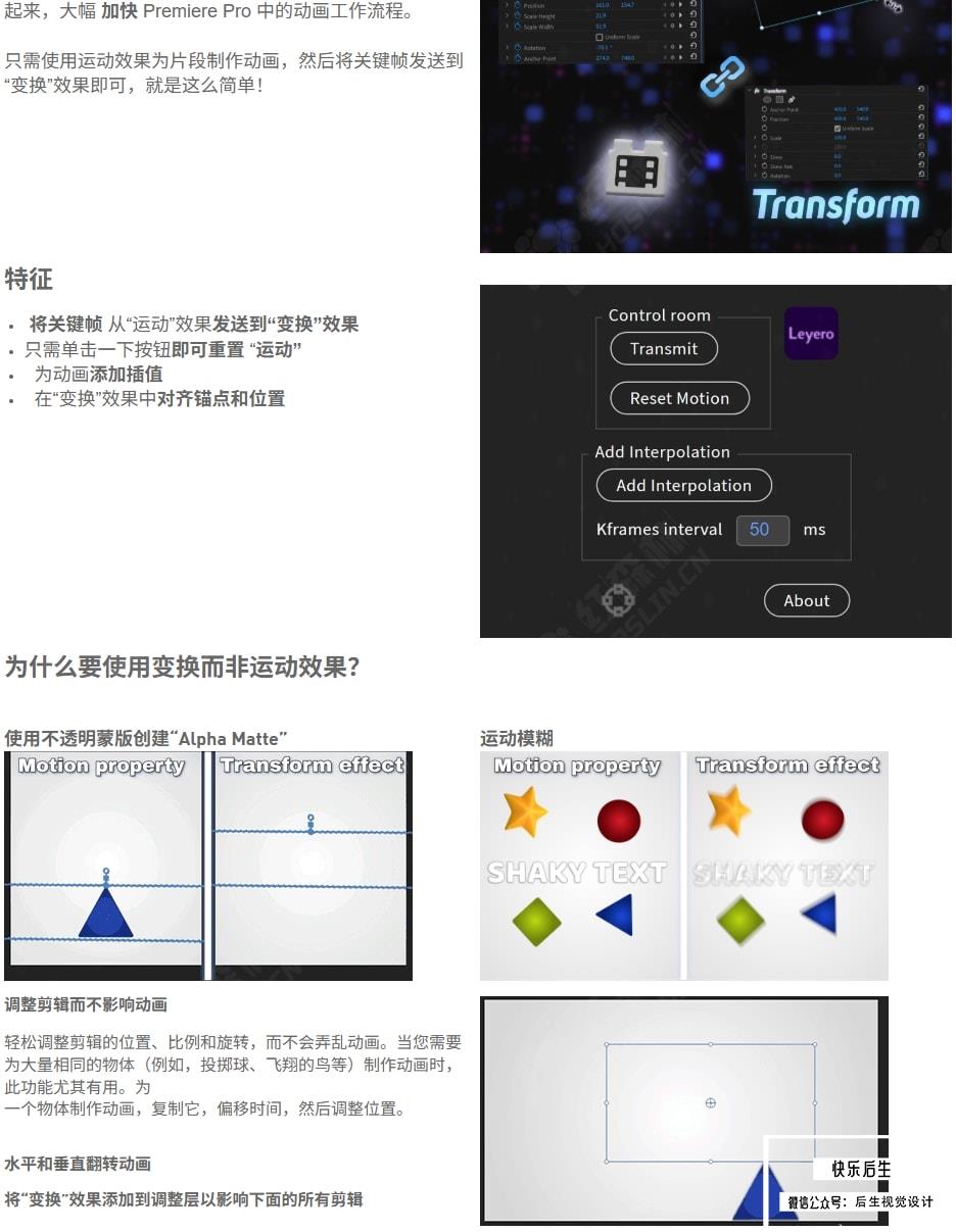 后生视觉设计资源网 » 【PR脚本】快速制作图层变换运动效果 Transmitter v1.3.1 +视频教程