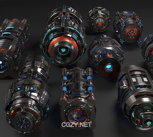 这是一套是科幻风格的机械零件/引擎核心类3D模型合集。提供.fbx .obj .mtl .max文件格式。