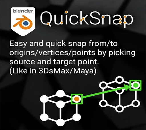 QuickSnap 是一个免费的混合器插件,允许通过选择源点和目标点快速将对象/顶点/点捕捉到对象原点/顶点/点,类似于 Maya/3Dsmax 中顶点捕捉的工作方式。